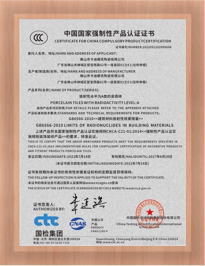 中国国家强制性产品认证证书